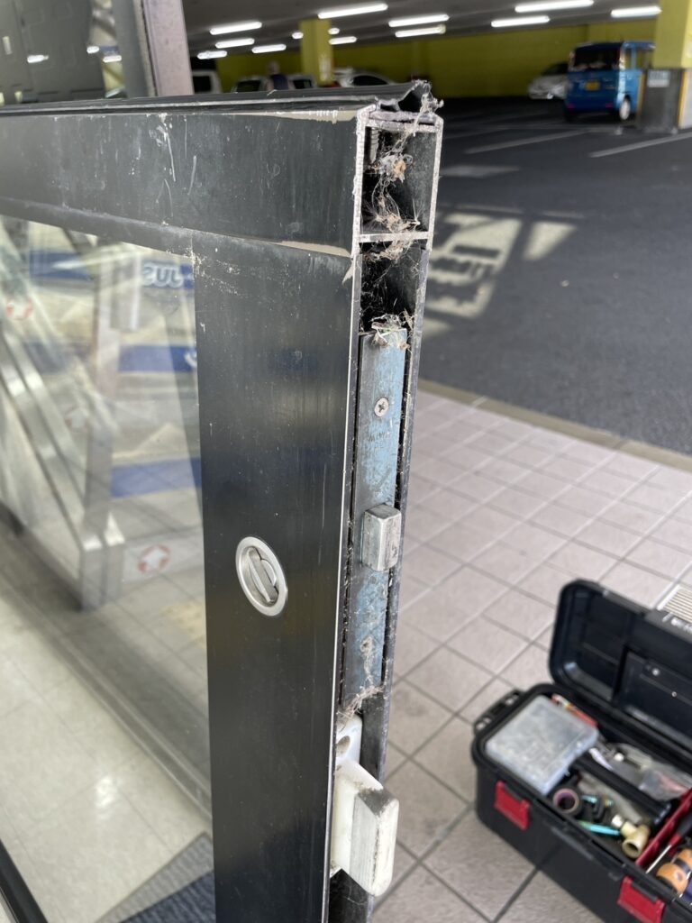 本日は瀬戸市の店舗様で自動ドアの鍵修理にお伺いいたしました