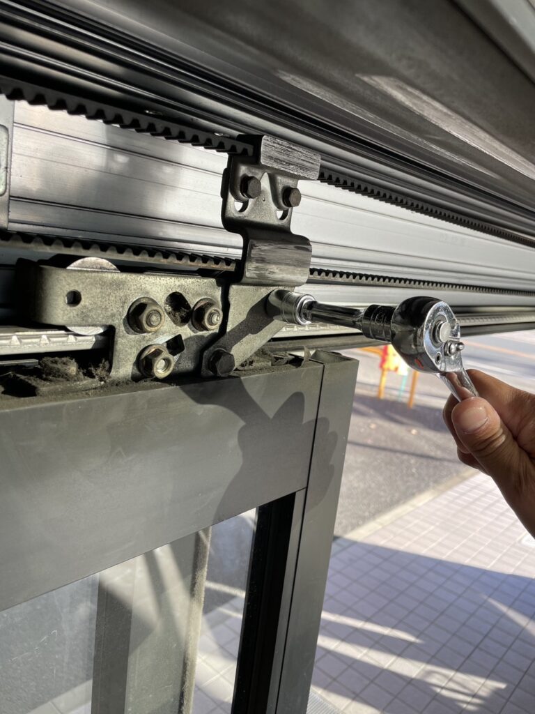 自動ドアの鍵が半分までしか開かず、ドアが動いてるうちにいつのまにか、勝手に鍵が掛かってしまうというご相談でした