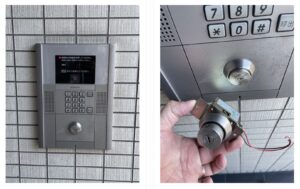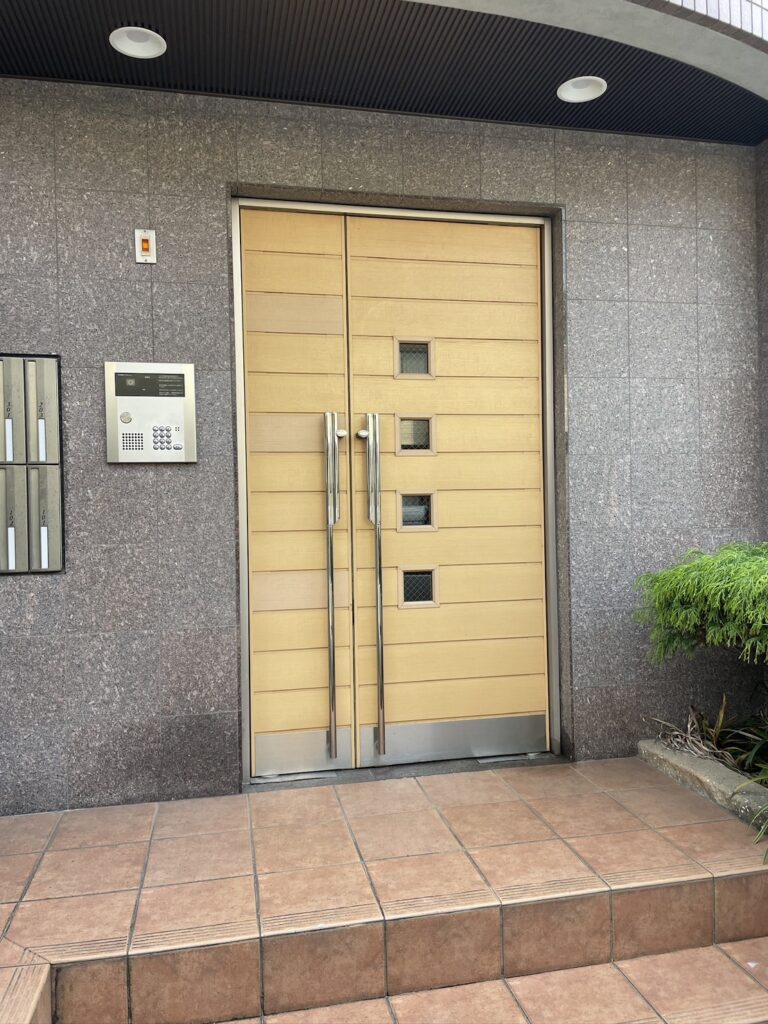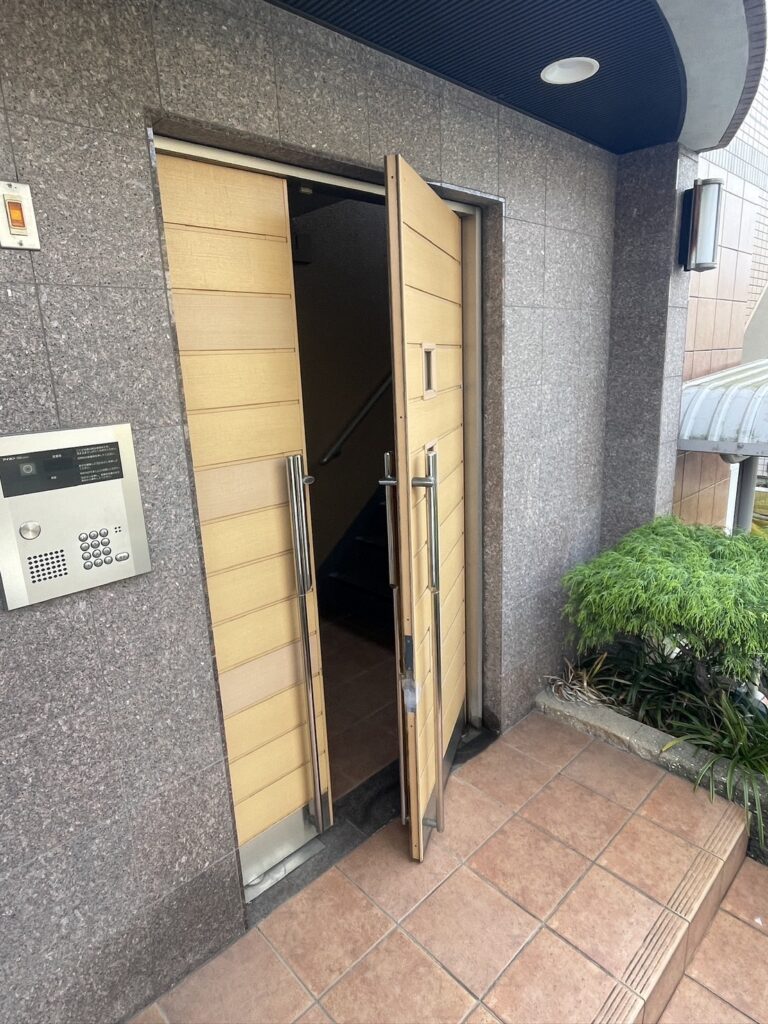 「マンション入口の扉が突然閉まらなくなり困っている」と緊急要請があり、現地へお伺いいたしました
